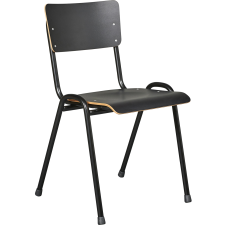 Met zijn frame van ronde stalen buis (22 mm) en een rug en zitting van multiplex met CPL-afwerking, combineert deze stoel robuustheid met verfijnde details.