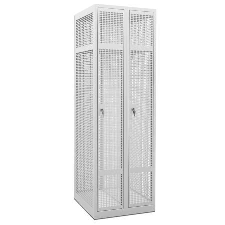 De CH KTS180-2.2 gaasgarderobekast is ontworpen voor omgevingen waar ventilatie, transparantie en efficiënt gebruik van ruimte essentieel zijn. Deze kast beschikt over twee hoge compartimenten naast elkaar, elk uitgerust met een legbord en kledingroede, waardoor kleding en persoonlijke spullen overzichtelijk kunnen worden opgeborgen.