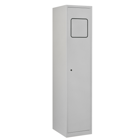 De kast is afgewerkt met een duurzame poedercoating en uitgerust met een cilinderslot, inclusief 2 sleutels. Hierdoor blijft de inhoud goed beschermd en beheersbaar.