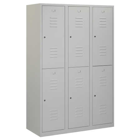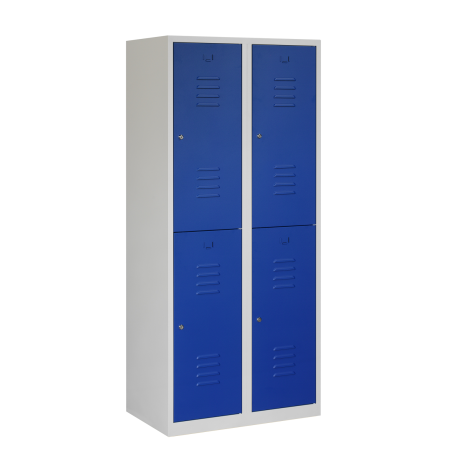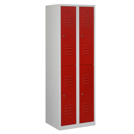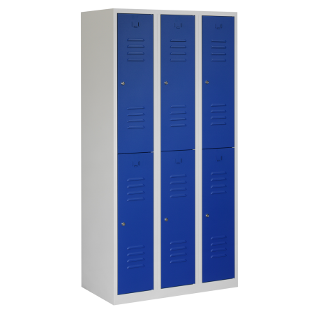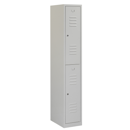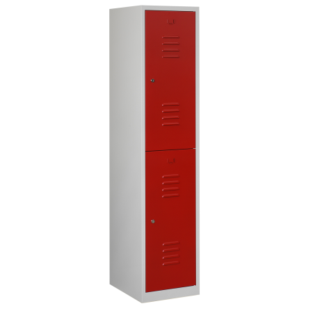 De CH RH 180-1.2 garderobekast is voorzien van twee afzonderlijke, afsluitbare vakken. Elk vak is uitgerust met een kledingroede, waardoor kleding overzichtelijk en netjes kan worden opgeborgen. De ventilatiesleuven in de deuren zorgen voor een goede luchtcirculatie, zodat de kast fris blijft – perfect voor gebruik in werkplaatsen, scholen, sportaccommodaties of kantoren.