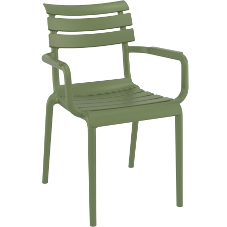 Ontdek de tijdloze elegantie en veelzijdigheid van de stapelbare olijfgroene Paris stoel van Siesta. Deze stoel met armleuningen voegt een vleugje verfijning toe aan zowel binnen- als buitenruimtes. Daarnaast is de Paris stoel ook verkrijgbaar in de andere prachtige kleuren zwart, donkergrijs, taupe, marsala en wit.