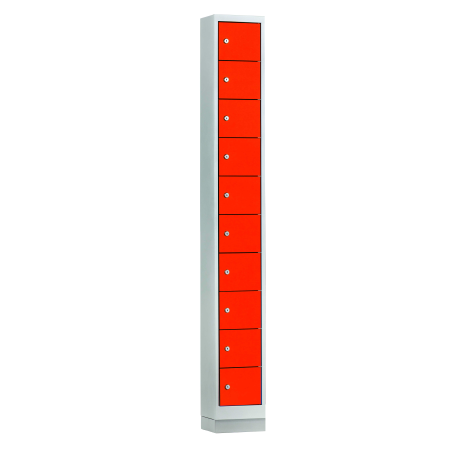Dankzij de volledig gelaste stalen constructie en de krasvaste poedercoating is deze mini locker bestand tegen intensief dagelijks gebruik. De kast heeft een moderne, lichtgrijze ombouw (RAL7035) en is leverbaar met lichtgrijze (RAL7035), rode (RAL3000) of blauwe (RAL5010) deuren, zodat hij perfect past in elke omgeving.