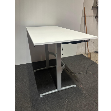 Het stevige zilverkleurige onderstel met wit melamine blad geeft het bureau een moderne, tijdloze uitstraling. Dankzij de krachtige motoren in beide poten en het robuuste frame is dit bureau uitzonderlijk stabiel, ook op maximale hoogte. De hoogte is traploos instelbaar van 65 tot 130 cm en de 3-traps poten zorgen voor een soepele en stille beweging.