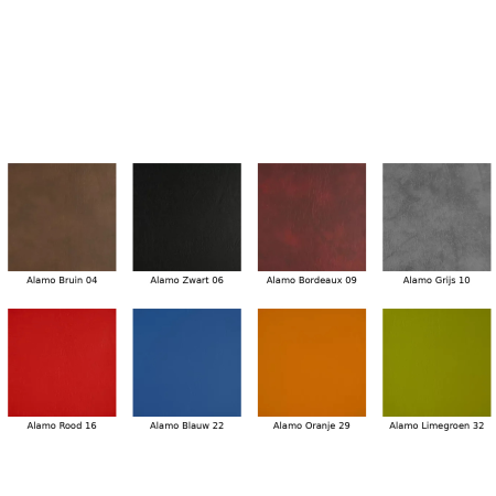 Alamo kunstleder is verkrijgbaar in een breed scala aan kleuren, van tijdloze tinten zoals zwart, bruin en grijs tot krachtige accentkleuren zoals rood, blauw, oranje en limegroen. Hierdoor past Alamo moeiteloos in zowel moderne als klassieke interieurs en biedt het volop ontwerpvrijheid.