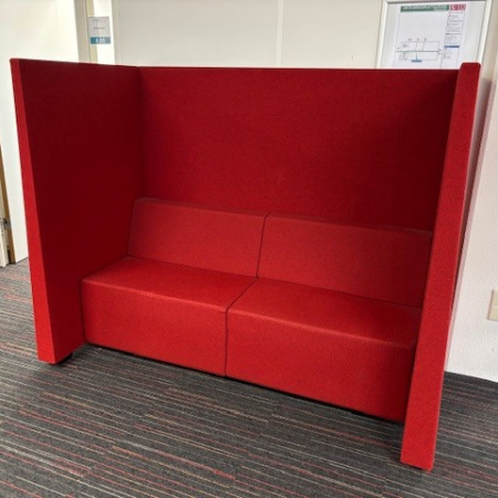 Comfortabele en stijlvolle treinbank, ideaal voor kantooromgevingen, wachtruimtes of overlegplekken. De hoge zij- en achterwanden zorgen voor privacy en dempen omgevingsgeluid, waardoor deze bank zeer geschikt is voor geconcentreerd werken of informele gesprekken.